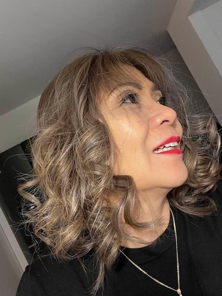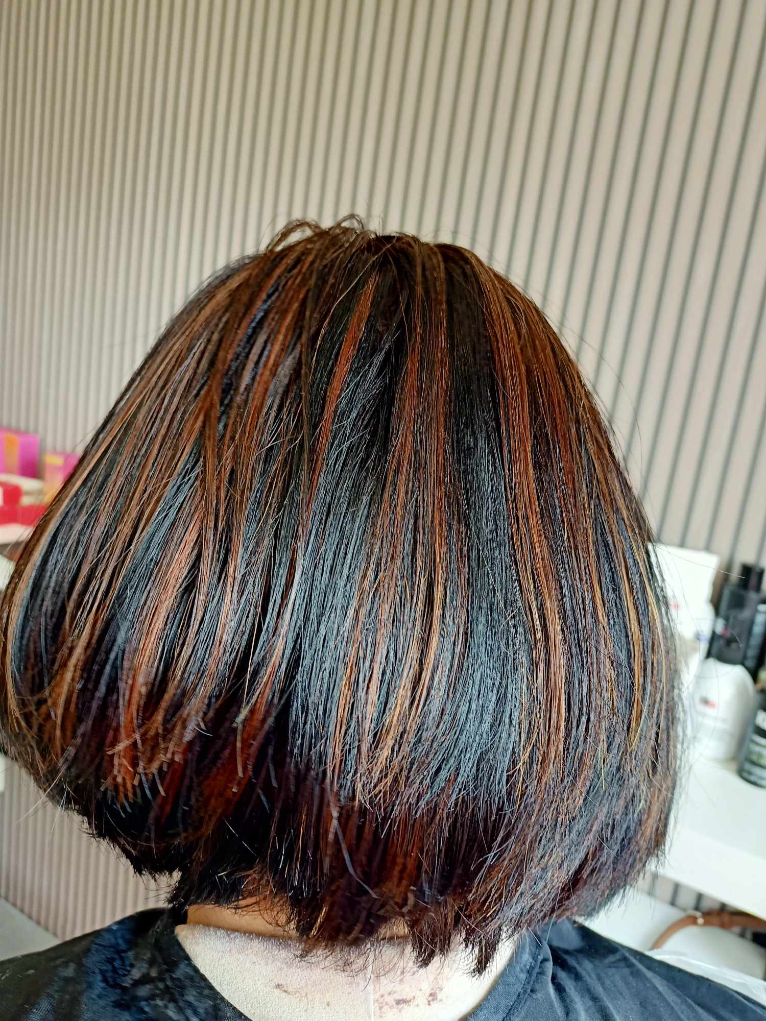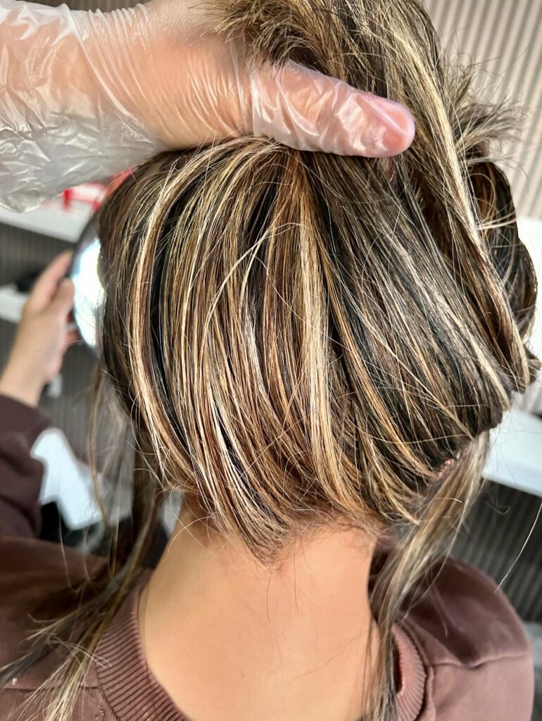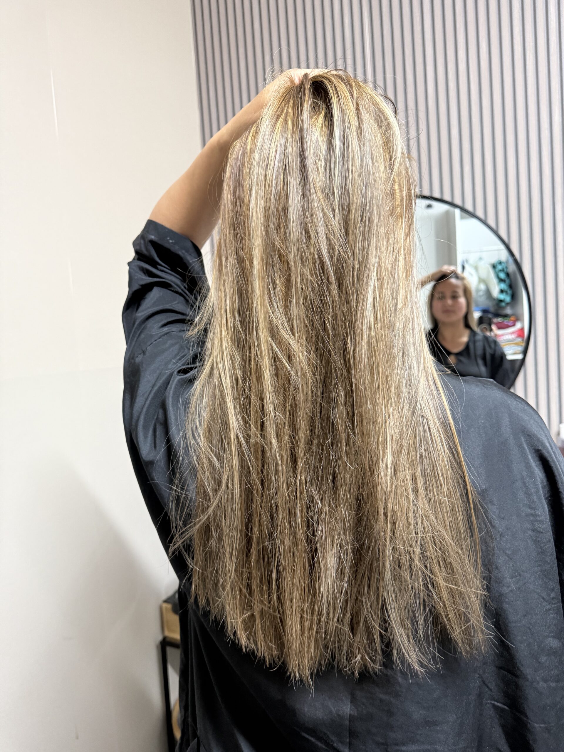 Customer Dina, we offer a personal experience and professional coloring techniques that make your hair glow.