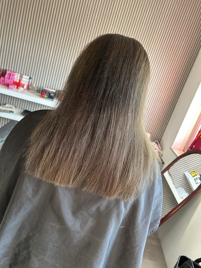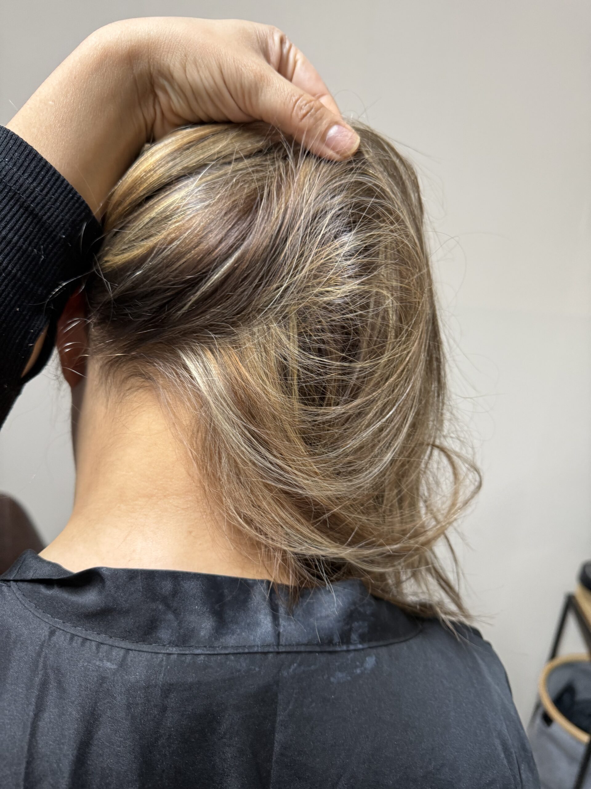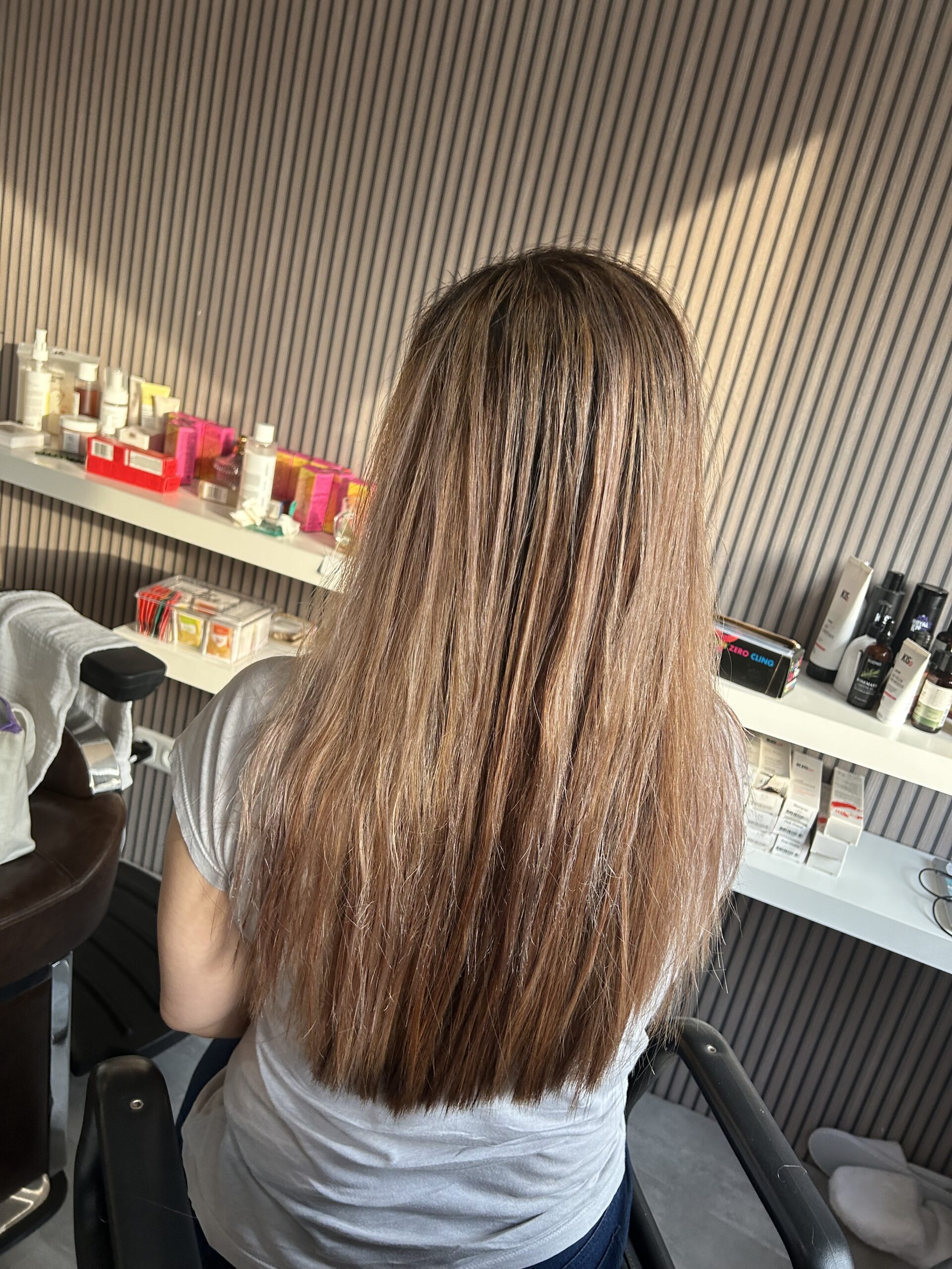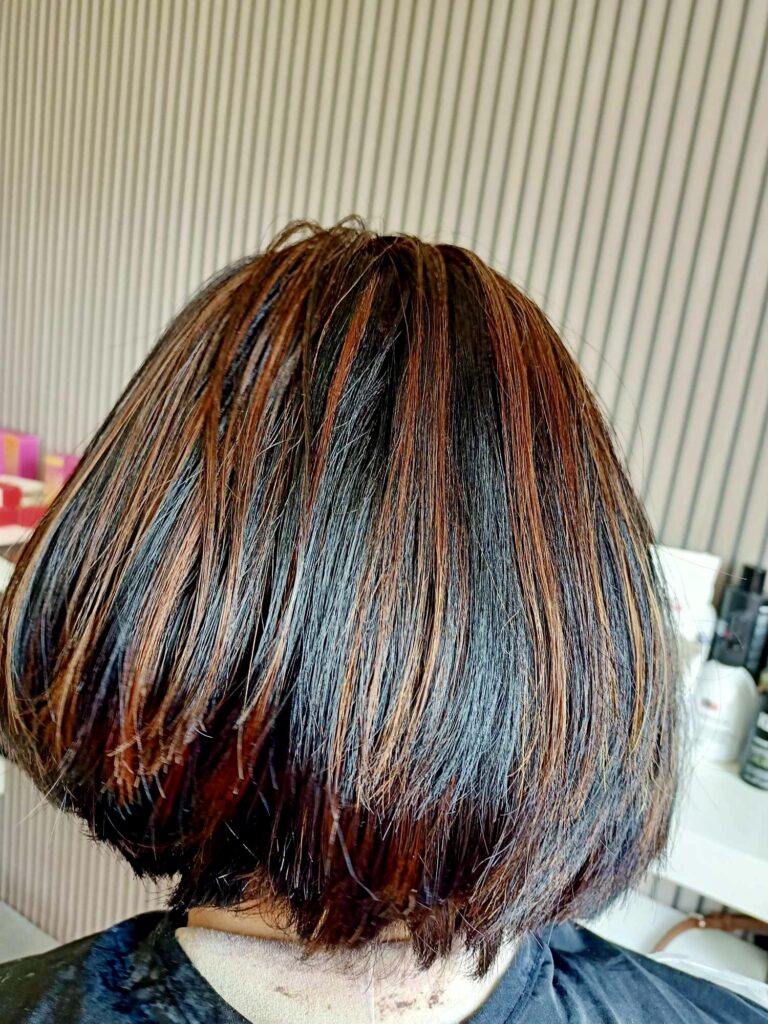 Customer Dina, we offer a personal experience and professional coloring techniques that make your hair glow.